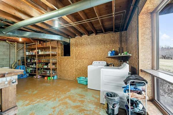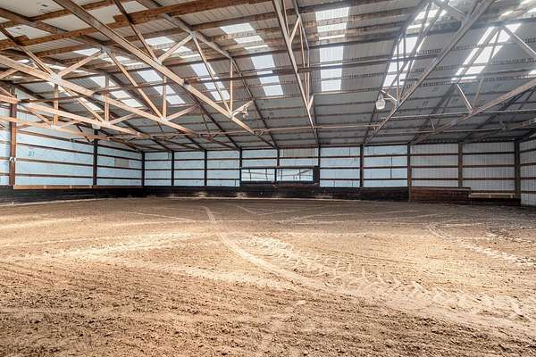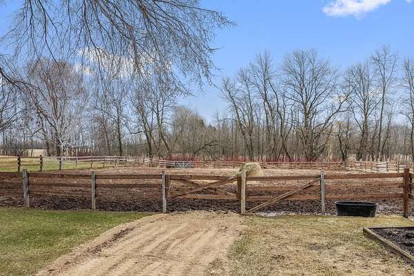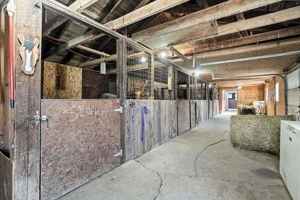 Attention horse-lovers! Set on a picturesque partially wooded 30 acre corner lot, this 2BR/2+BA ranch home features large bedrooms, kitchen w/ appliances (ref '24, stove+DW '25), formal dining & large LR w/gas FP, ample natural light & decl access. Primary bedroom w/twin cls & adjacent bath w/soaking tub+shower. Opposite, bedroom 2 & walk-thru office enjoy picture windows & nearby full bath w/shower. Walkout LL ready for expansion w/partially-finished full bath, patio access, big windows, laundry room w/W+D & clean, dry storage. 2.5 stall detached heated garage w/ large shed. Horse-barn & indoor arena heated by wood-stove ('21) are just a few steps from the front door. Pasture fencing updated '21, and 20 acres of hay were just planted in 2025. Great location minutes from Kewaunee & Algoma.