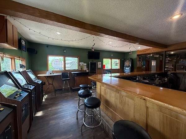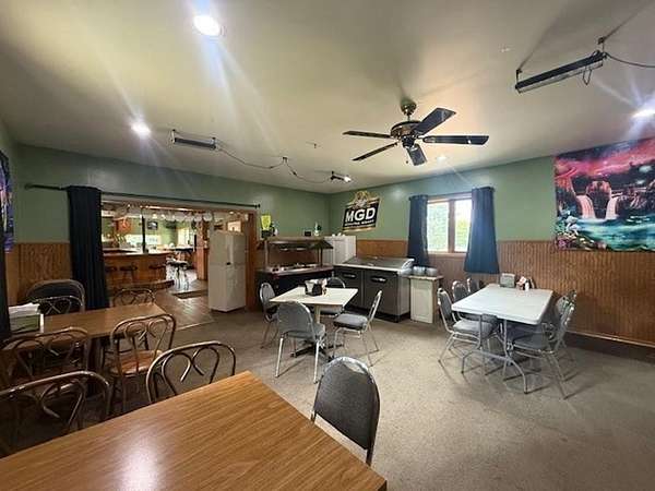 Country property set on over 5 acres between Merrill and Tomahawk. Currently being used as a tavern and restaurant, this unzoned property has many options. Either take over the current use with the inventory and equipment already there (almost all stays with property) or convert to a residence. There is potential for a campground with the land that is available and the snowmobile trail goes through this property as well. Ample parking with room for volleyball courts. Currently there is a horse shoe area. Across the street is the Wisconsin River and the bridge that crosses is County Road E. Current owners have done many updates and the restaurant portion has a good seating section and the bar area has ample space with great access to the kitchen. Two updated restrooms have been added and lots of newer kitchen equipment as well as a walk in cooler. Turn key operation for someone looking to have their own business. The upper level of this property is currently partially gutted and ready for remodel if someone wanted to add a living quarters.