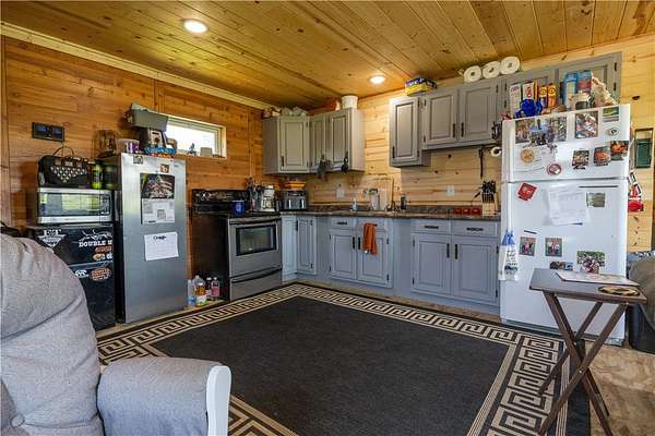 Looking for space for your toys? This might be the property for you! The 70X36 shed with a concrete floor, 14' door and tall sidewalls, is ready for just about any equipment or toys that you can throw at it. The 1-Bed 1-Bath house, built in 2020, has both gas and wood heat for year-round comfort and should be low maintenance for years to come. The home sits on 12 acres of land that is a mix of open, wooded and lowland, and would make a nice small parcel to hunt on. The yard around the home offers lots of open space, perfect for gardening or potentially some animals. Give us a call for more information.