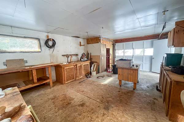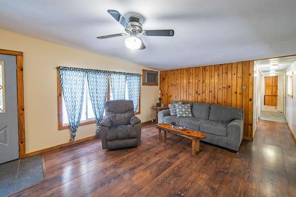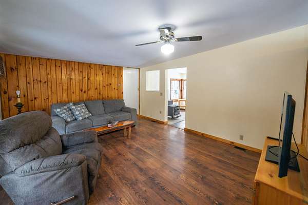 Enjoy the peace and quiet of rural life with this well-maintained 2-brm, 1-bath single wide mobile set on 1.5 acres across 3 lots. This property offers an affordable opportunity without sacrificing comfort.Two detached garages- a spacious 2-car garage and an additional 1-car garage, both topped with metal roofs-providing excellent storage and workshop space. A fenced in area gives your pets a safe place to roam. Relax in the inviting 3-season porch warmed by a free-standing wood stove, perfect for morning coffee. A partial basement offers ideal space for a storm shelter or root cellar Inside you will be surprised by the spacious open kitchen/dining/living room area that is flooded with natural light, custom made cabnets, newly painted walls, and new flooring in the 2nd bedroom, bathroom,