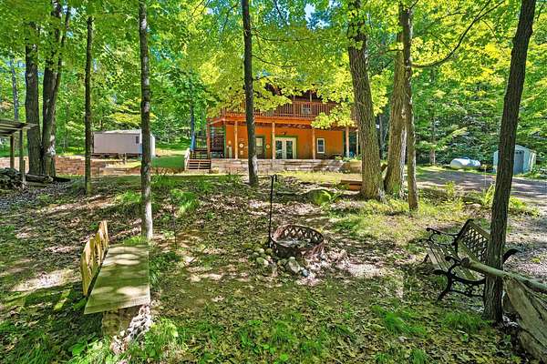 Your Northwoods basecamp awaits! This unique property offers two separate living quarters-for guests, or rental potential. Nestled just 1 mile from full- recreation Sawyer Lake and surrounded by public forestland, it's a dream for outdoor enthusiasts. Easy access to snowmobile, ATV/UTV, and equine trails means adventure starts at your doorstep. The elevated setting provides privacy and views, while the updated interior is warm and inviting. Whether you're seeking a year-round home, a retreat, or a dual-income opportunity, this property delivers unmatched flexibility in the heart of White Lake.