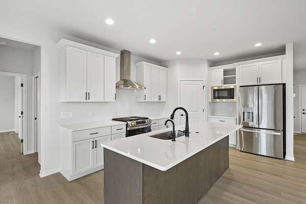 Eldon Homes, your Hometown Homebuilder presents the Taylor Plan at Shamrock Estates in Albany! Entertain guests or spend quality time with loved ones in this beautifully crafted home. The heart of the home is its gourmet kitchen, featuring high-end stainless steel appliances, a large island with quartz countertops, custom cabinetry, and abundance of light along the back of the home. The finished lower level includes large rec room with wet bar rough-in complete, large bedroom, full bath and large storage room. Upgrades throughout include hard flooring throughout, LVT in all bathrooms and laundry, upgraded cabinets and kitchen appliances. Home includes 1-2-10 limited/transferable warranty.