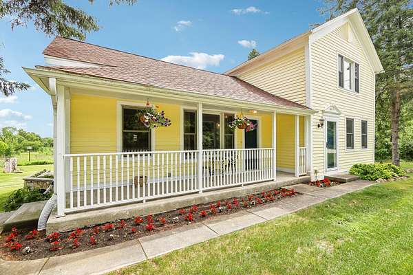 Welcome to a ''Taste of Heaven on Mill Rd''. Built in 1848, this timeless 3-bedroom, 2-bath farmhouse is a rare gem that beautifully blends old-world charm w/ thoughtful updates. Set on 3 picturesque acres, you'll find a large, fenced garden ready for your farm-to-table dreams. Inside, the character shines through original details preserved w/ care, while modern touches offer the comfort & convenience today's buyers expect. Cozy living spaces & a welcoming kitchen and an upstairs kitchen make this home as functional as it is full of charm. Need space to tinker or create? You'll love the oversized 3+ car garage w/ an attached workshop. From the one-of-a-kind shed crafted from the original barn wood, to the old silo standing tall come & enjoy the history!