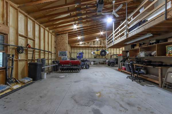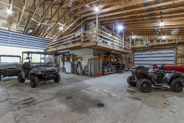 3,000 sq ft barn with 860 sq ft finished living quarters 2,140 sq ft insulated, heated shop area with pellet stove