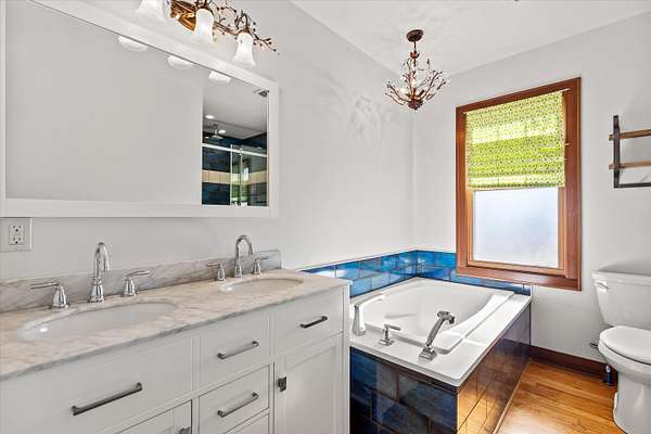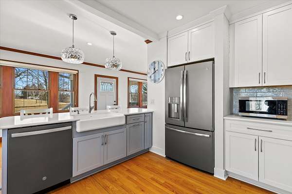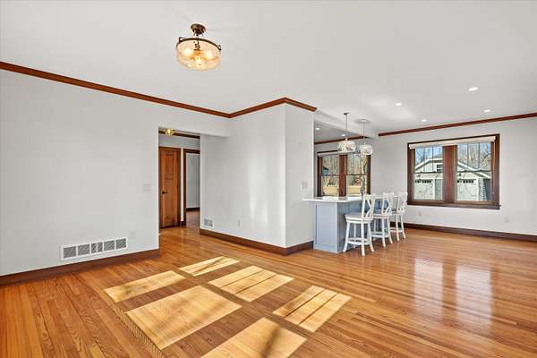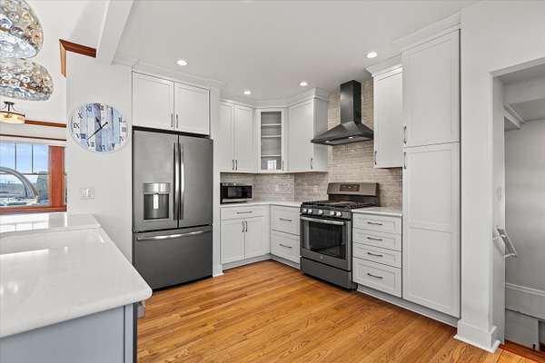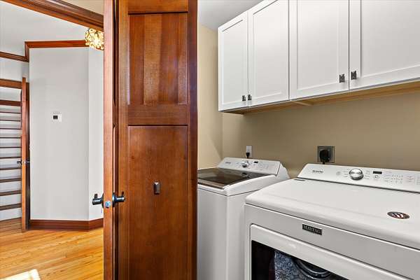 This adorable bungalow on nearly 4 acres offers the perfect blend of modern updates and classic charm! The instant you walk in, you'll notice the fully remodeled main level. The kitchen features SS appliances, tile backsplash and crisp, white cabinets. The main level features a half bath w/laundry and master suite with walk-in closet and rainfall shower. The upper level has two BR's and the tiled full bath is stunning! The gorgeous, oak floors are original to the home. The well-maintained exterior includes newer vinyl siding, low maintenance trim and so many perennial beds! Two 2-car garages and an outbuilding are great for the hobbyist or to store your toys. Located just outside the city and across the street from the 40-acre Crystal Lake Park with easy access to Hwy 151 & so much more!
