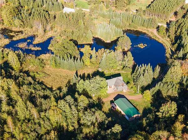 Remote 2 Bedroom home on 55 acres with your own private pond and the Flambeau River State Forest at your doorstep! Oversized 2-Car attached Garage, plus an extra large 28' x 60' 4-Car Garage and heated shop. The first floor of the home includes a combination Kitchen-Dining area with fireplace, formal Living Room, Bedroom, Bath and Laundry. Bedroom #2 and a Bonus Room are on the second floor. Enclosed front Porch. The 55 acres of woods and water is gently rolling with established trails throughout and a 6 acre field.