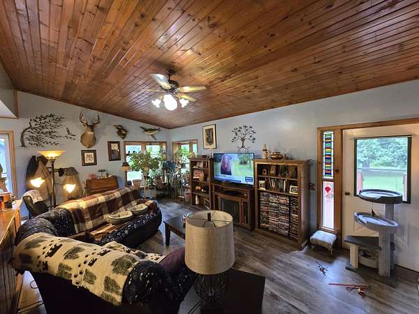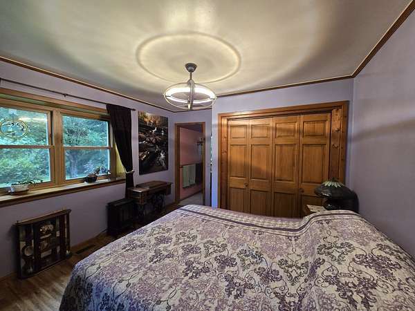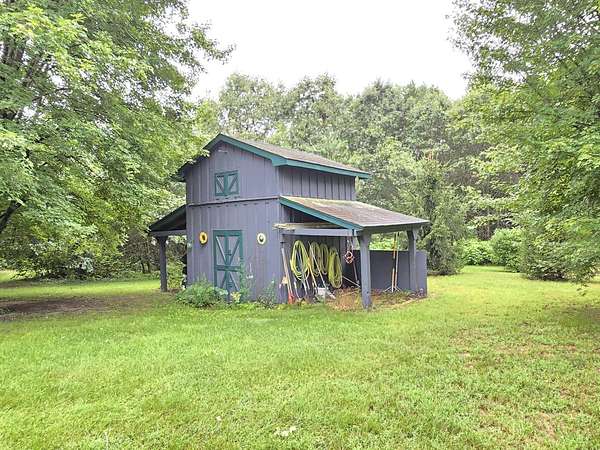 Est $2,655/moPrivate two bedroom home on beautifully wooded 9.36 acres with walking trails and nicely landscaped. Pond is approximately 12-14 feet deep and has variety of stocked fish. Separate apartment rental with all the amenities located above detached garage. Current tax bill is from old survey.
