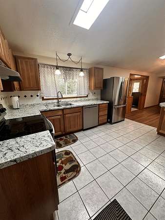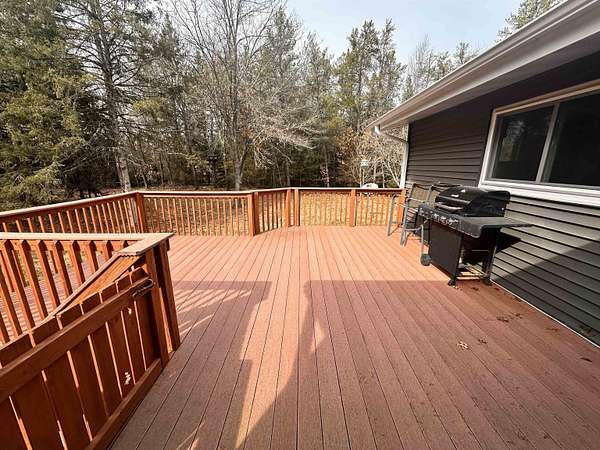 Country living near Castle Rock Lake! 3BR, 2.5BA split-level home on 5 wooded acres just minutes from New Lisbon. Sellers recently replaced the siding (2023) & roof (2025), updated kitchen cabinets & countertops, and completed many fresh updates so you can move right in. Spacious rec room with dry bar for entertaining plus convenient access to the attached garage—great for projects or hobbies. Four-season room overlooks the heavily wooded backyard where you can enjoy sunsets and watch the deer. Composite decking off the porch. Generator and deer stand included. New 24x36 pole shed plus attached 2-car and detached 2-car garages. Long asphalt driveway with plenty of parking and turnaround space.