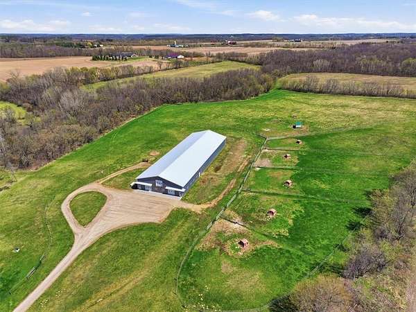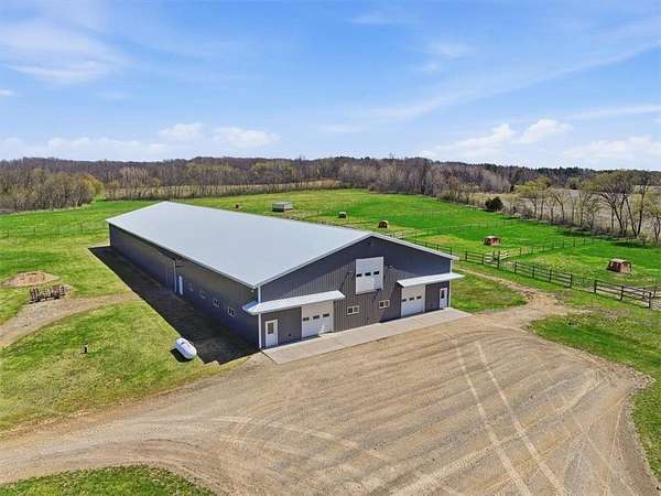 Welcome to this stunning, one-of-a-kind equestrian estate just south of River Falls. This nearly 75 rolling acres has it all. The classic farmhouse is exactly the scene you would expect as you enter this property boasting 3 bedrooms and 2 bathrooms. There are several additional buildings adding every amenity expected for a property of this nature. Multiple pole buildings on this property offer a heated shop, ample storage and stables near the home. Just up the driveway, you will find one of the most custom and beautiful stables and indoor arenas you've ever stepped foot in. This 70' x 220' building has 12 custom stalls, a wash bay, 2 viewing areas, hay storage, auto waterers and much, much more. The expansive indoor riding arena, attached to the heated stables has all the space one could desire at 70' x 160'. There are several pastures along with perfectly proportioned paddocks with auto waterers supporting each one. Every inch of this equestrian area is well thought-out and detailed. Last but certainly not least, this nearly 75 acres offers opportunities beyond imagination with lush fields and beautiful tree lines. This stunning acreage is nearly impossible to find so close to the Twin Cities greater area. This is a property you will not want to miss.