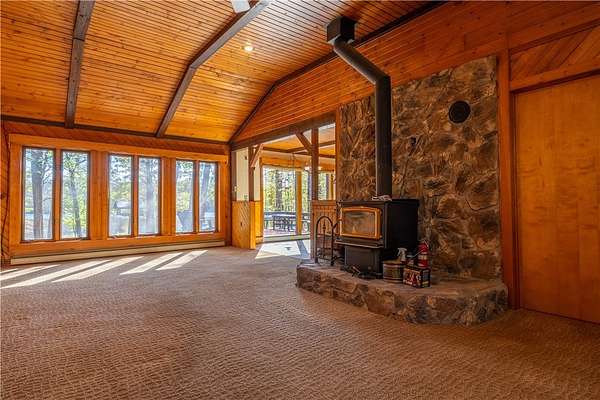 28 acre Estate with over 800' of lake frontage! This rare and unique property offers privacy and remarkable beauty. Towering mature hardwoods, Oak, Maple, Ash, and Hemlock with over 800' of prime gently sloping frontage on the Big Falls Flowage at the gateway to the Flambeau River State Forest! 3 Bedroom, 1.5 bath split-level home with 2 fireplaces, Family Room, Living room, Office, and attached 2-Car insulated Garage. Includes an Insulated Shop and storage building, garden shed, and bunkhouse. Big falls Flowage is 369 acres and is fed by the Flambeau River which provides miles and miles of uncrowded pristine wilderness canoeing, kayaking, overnight camping; outstanding natural scenic beauty with exceptional fishing and recreational activities. Enjoy the sunrise views of natural undeveloped shores from the large composite Deck. An opportunity to own a truly unique property offering the very best of the north woods!