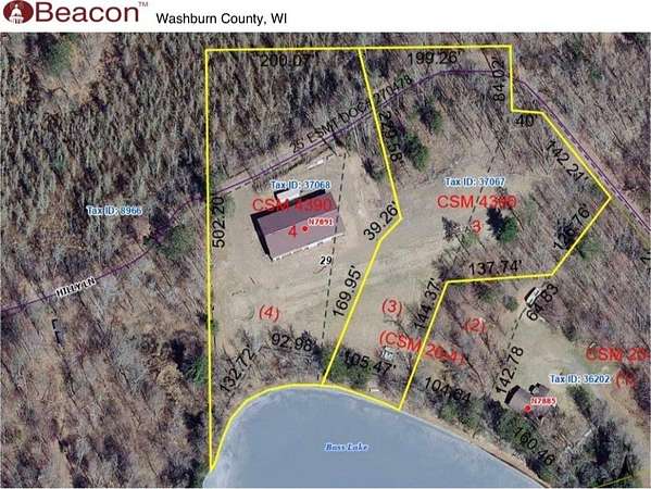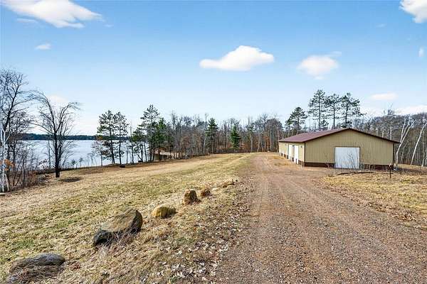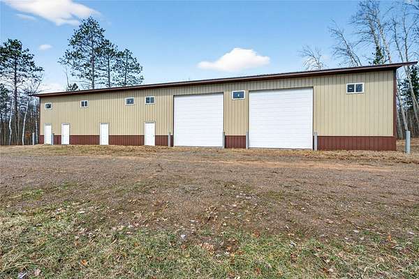 Endless possibilities await on Bass Lake! This newly constructed 50' x 100' building/potential cabin offers approximately 5,000 sq ft and sits on a private spacious 4.17-acres with an impressive 315 feet of level, sandy frontage. Whether you envision a barndominium, workshop, storage facility, or a combination of uses, this property is ready. The building is divided into two sections: one is a 40' x 50' area designed for living space, already plumbed for three bathrooms and a kitchen with conventional septic and drilled well. The remaining 50' x 60' section provides ample room for storage, equipment, or hobbies. Quality features include full insulation, durable liner steel, and in-floor heat tubing throughout the entire building. The property is equipped with three oversized 14' x 14' insulated garage doors and multiple service entrances for convenient access. An added bonus-this property is split into two separate lots, offering excellent investment potential. Purchase the entire property and sell off one lot, or hold it for future development or added privacy. Bass Lake is known for excellent fishing and is located in a highly sought-after recreational area with direct access to miles of ATV and snowmobile trails. Surrounded by Washburn County Forest land, you'll enjoy year-round outdoor activities.
