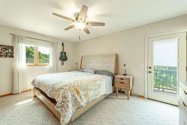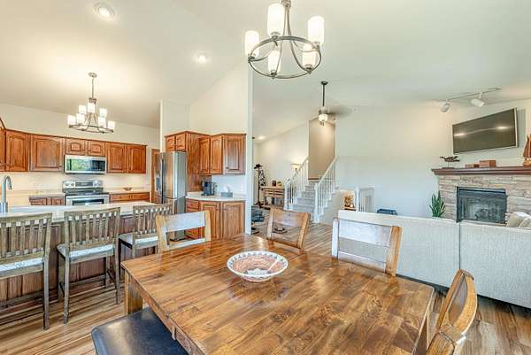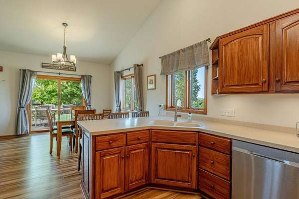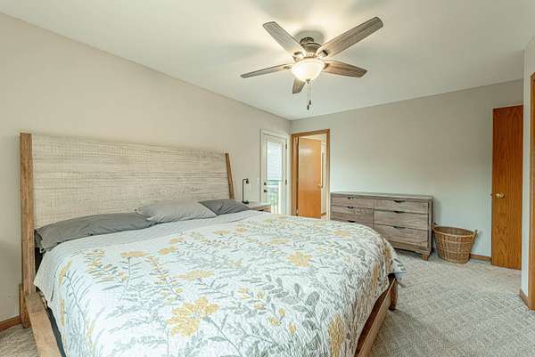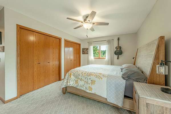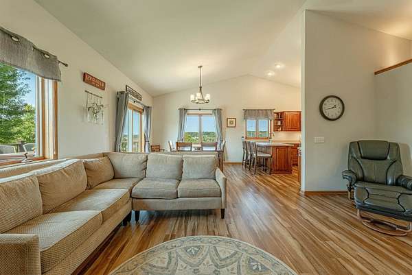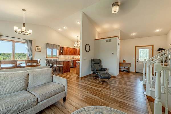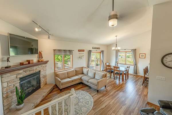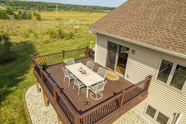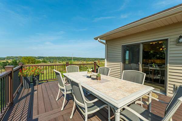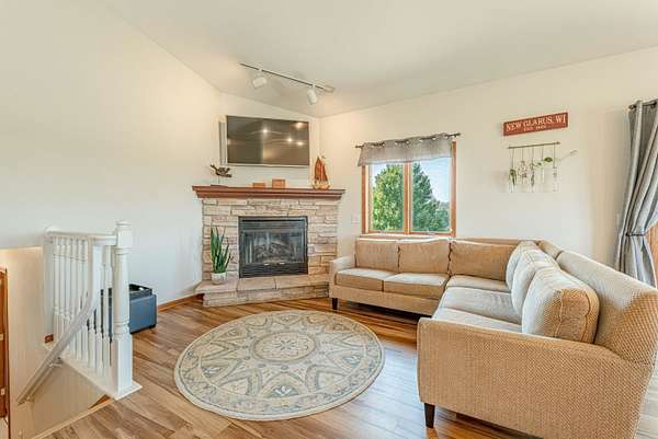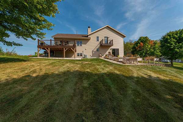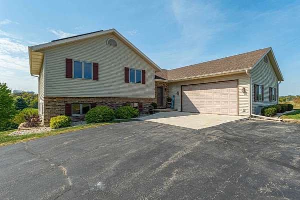 This spacious Tri-Level on 1.76 (per assessor) picturesque acres near New Glarus offers room for everyone with a quick commute to main roads. The main level features vaulted ceilings, a large kitchen open to the dining area and living room with fireplace. Upstairs you will find a full bath, 2 bedrooms, and a primary suite with private bath. The lower level offers 2 more rooms--ideal for a bedroom, office, or flex space--plus a full bath and living area with walkout to the backyard and patio. Down a few more steps is a huge family room with wet bar and additional flex space. Enjoy sunsets and sweeping views from the back deck! Home also features solar panels and many other updates! Close to bike trail, brewery, and golf course!