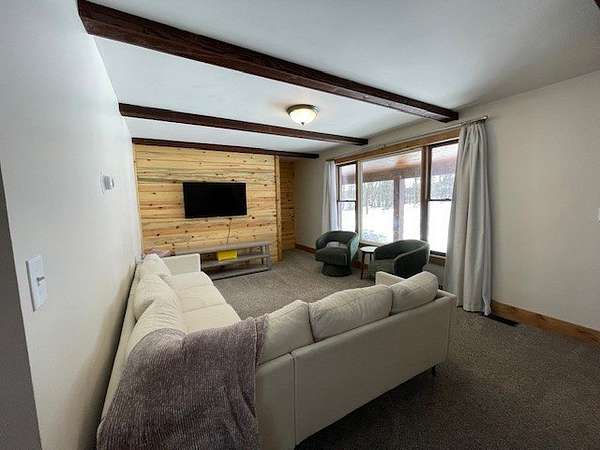 Move-in ready country home on 18 acres! This updated property offers 3 main-level bedrooms, including a primary with half bath, plus a full bath and main-floor laundry/large pantry. Spacious kitchen and living areas feature shiplap and wood accents. Updates include roof (2022), septic (2020), electrical panel, trim, partial LP siding, fixtures, new carpet/flooring, fresh paint, and new rear decking. Lower level includes a non-conforming bedroom, full bath, and ample storage. Enjoy the covered front porch overlooking apple trees and Bean Brook, a Class 1 trout stream. Borders Washburn County Forest with extra acreage across the road for hobby animals. Attached 2-car and detached 1-car garages. Just 9 miles south of Hayward on Stone Lake Road.
