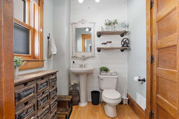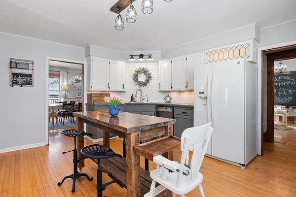 Welcome home to this charming, olde-world farmhouse featuring original wood floors, trim and built-ins! Entertain in the inviting formal dining room & enjoy a bright kitchen with concrete counters & tile backsplash. Main lvl features 9' ceilings, 1st fl. laundry, bedroom/flex space. 2nd lvl includes spacious primary bedrm & full bath w/ tiled shower/soaker tub. Sip your morning coffee in 1 of 2 screened porches before enjoying a stroll around the lovingly landscaped 1.28-acre grounds & bountiful orchard! Enjoy apple, mulberry, peach, cherry, pear trees & raspberries, grapes & asparagus. Adnl features: wraparound porch, mudroom w/ ample storage. Per SLR: septic ('21), furnace ('15), AC ('18). Convenienty l25 min to GB or Appleton! / SELLER REQUESTS OFFERS TO BE SUBMITTED BY NOON ON 3.23.26.