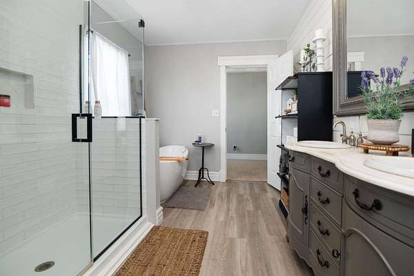 - At Least 1 Bathtub, Expandable Attic, Formal Dining, Pantry, Walk-In Shower, Wood/Simulated Wood Floor