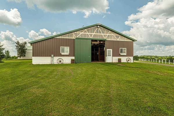 Escape to this one-of-a-kind luxury estate on 37+- acres, offering unparalleled beauty and privacy in Green County! This sprawling ranch features nearly 5,500 sq ft of living space with an open-concept design, soaring ceilings, and a chef's kitchen with Sub-Zero fridge, quartz counters, and a large island. The primary suite offers a private walkout to the sunroom and a spa-like bath with soaking tub, while a second ensuite completes the main level. The walkout lower level adds a family room with kitchenette, two bedrooms, and a full bath. Outside, enjoy exceptional amenities including a 40'x117' barn, 40'x62' hay barn/shop, and an 82'x176' indoor riding arena with paddocks and scenic wooded trails along with an outdoor riding area. Experience the best of luxury country living!