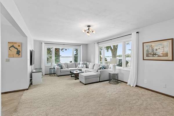 Welcome to the Lake! Nestled at the end of a peaceful cul-du-sac, this stunning 4 bedroom, 2.5 bath, lakefront home sits on just over two acres of private, breathtaking views of Beaver Dam Lake! Relax and enjoy the sunset with an evening cocktail on your deck or sip your coffee in the sunroom - all while overlooking over 300 ft of water frontage! This property also features the convenience of your very own private boathouse! Step inside to a spacious, inviting kitchen and living room - perfect for every gathering! The huge, finished basement equipped with a wet bar is the perfect place for entertaining. The upper level boasts two large bedrooms which allows plenty of space for all your guests! This is a must-see, rare opportunity to own this peaceful oasis!