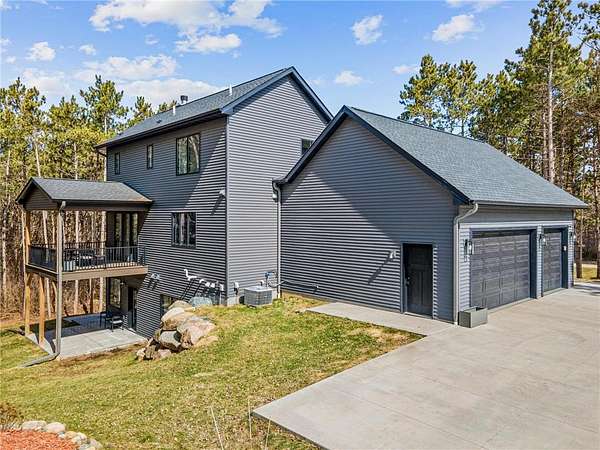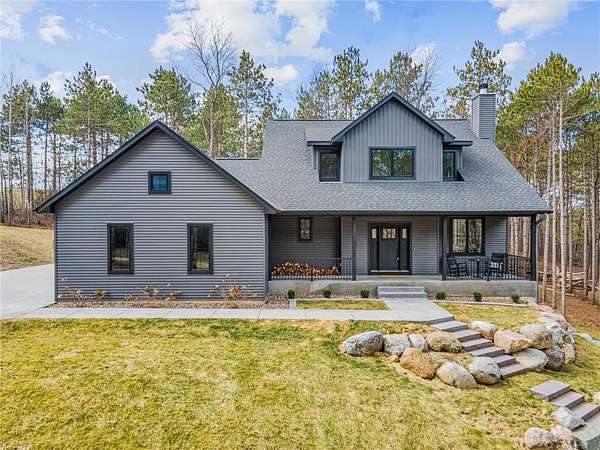 Tucked away on over four acres of rolling countryside and surrounded by mature pines, this custom-built River Falls home offers a balance of modern design and natural surroundings. Built in 2022, the property combines clean finishes, open space, and a quiet setting just minutes from town.