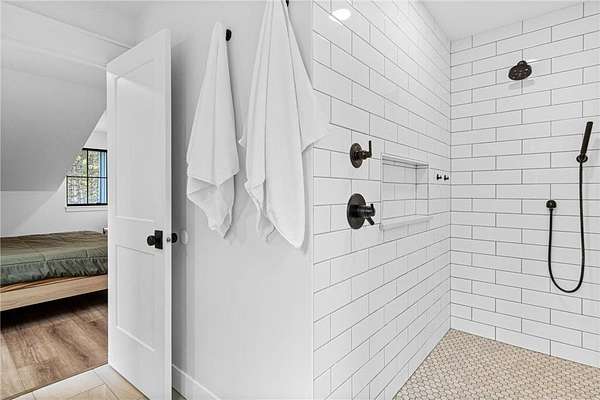 Upstairs, all four bedrooms are located on one level. The primary suite includes a walk-in tile shower, a spacious closet, and a layout that offers privacy without feeling isolated from the rest of the home.