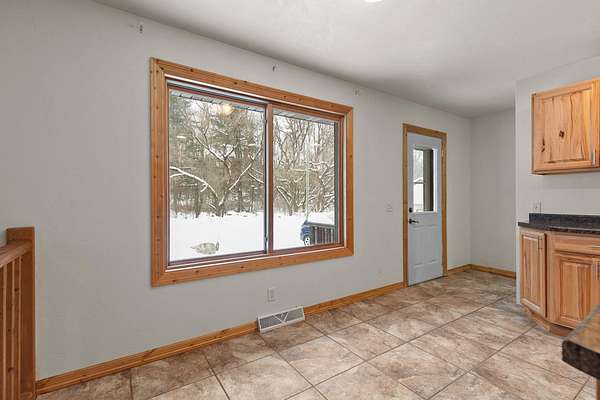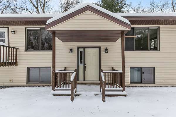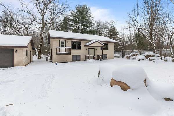 Est $1,806/moBeautifully updated Bi-Level Home on 5 Acres! This property was built in 2007 & features an open concept layout with 4 bedrooms & 2 full bathrooms. From the knotty pine trim, doors & cabinets, to the massive workshop/garage area, this is a one of a kind property. The garage is heated & has running water to it. Addition to the garage was previously used for dog breeding. All room dimensions are estimated & should be verified.