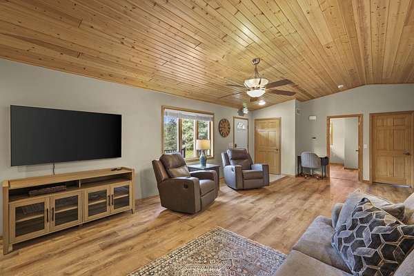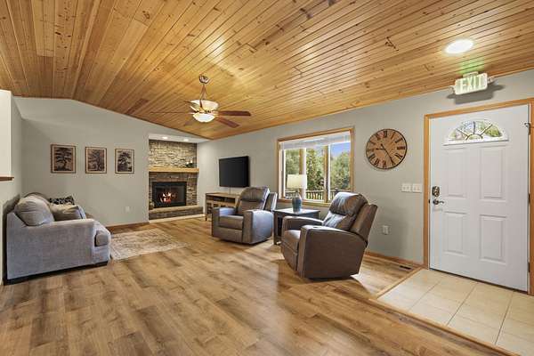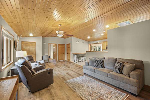 Stunning 7-bedroom retreat on 6.5 wooded acres, just minutes from Castle Rock Lake, offering the perfect blend of tranquility and convenience between Mauston and Necedah. Enjoy the spacious sun room off the kitchen and wood burning fireplace for those cozy nights in the living room. 30x30 pole shed with concrete floor, ideal for toy storage or convert to a game room! The home has been completely updated with all new flooring throughout, fresh paint in entire house, and Trex decks- front deck and large deck out back for entertaining in the backyard with fire pit just steps from the deck. Also features new furnace, AC unit, and water heater. No HOA! Whether a full-time residence, vacation escape, or investment property (Airbnb/VRBO), this home is ready to impress. Furnishings negotiable!
