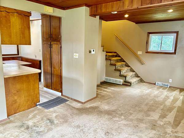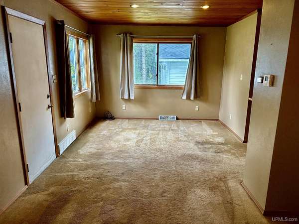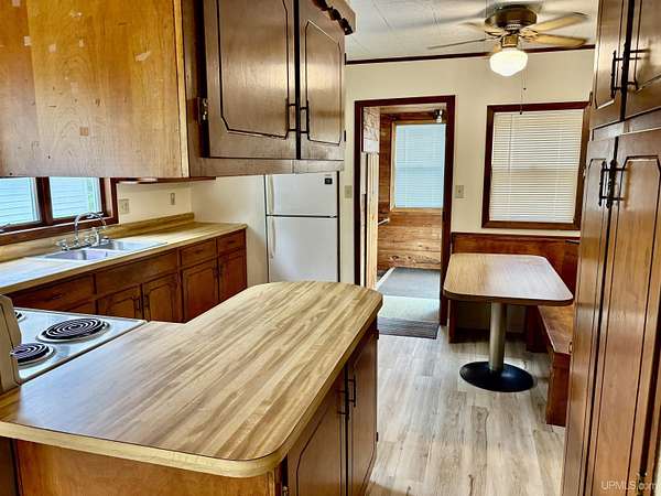 Quaint 2 br, 1 1/2 bath country home with a 2 car garage and 5+ acres in Erwin Township! Close to ABR Cross Country ski trails, this home features vinyl siding, metal roof, back deck w/ramp all on a private setting. The back entrance brings you to an eat-in kitchen with plenty of cabinets and counter space including a peninsula, pantry and corner bench w/table. The main level bath has a shower. The living room is at the front of the home. Upstairs are 2 smaller bedrooms both with closets and a 1/2 bath. The oversize 2 car garage gives extra room for storage. Take a look at this one soon!