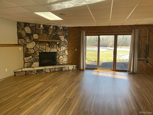 COUNTRY LIVING ON 20 ACRES - Just 2 Miles from Town! Discover space, privacy, and tons of storage with this spacious split-level home set on 20 beautiful acres in a peaceful, country-like setting. This four-bedroom, two-bath home with large rec room/bar, hot tub, gas fireplace, and outdoor firepit offers room for everyone--inside and out. Includes several custom-made oak-built ins. Kitchen also has oak cabinetry, granite countertops, built-in appliances, and an open floor plan with vaulted oak t & g ceilings with a sliding glass door that opens onto the deck. Take in the serene views that overlook the pond and property. Enjoy convenience with a 28x28 attached garage with automatic door openers and a 28x28 heated detached garage, plus a drive-through stall on the back--perfect for parking ATVs, snowmobiles, or outdoor equipment. The property also features multiple outbuildings, including an extra pole building and an additional garage located near the edge of the property, giving you endless options for storage, hobbies, or a workshop. It even has a kid's playhouse on the property. You will also enjoy the easy access to some of the finest x-country ski trails in the Midwest located across the street. A blacktop driveway adds easy year-round access. Recent improvements provide peace of mind and added value, including a new roof, new deck and railings, firepit, new floor coverings throughout, and updated septic system. If you've been dreaming of country living with all the amenities close by, this property delivers it all! Make your appointment today!