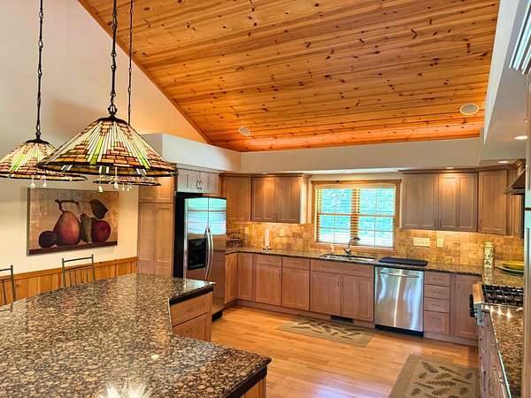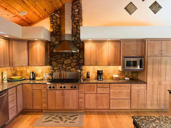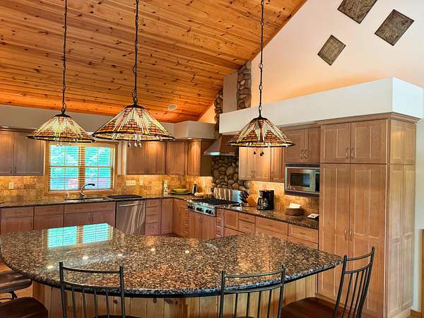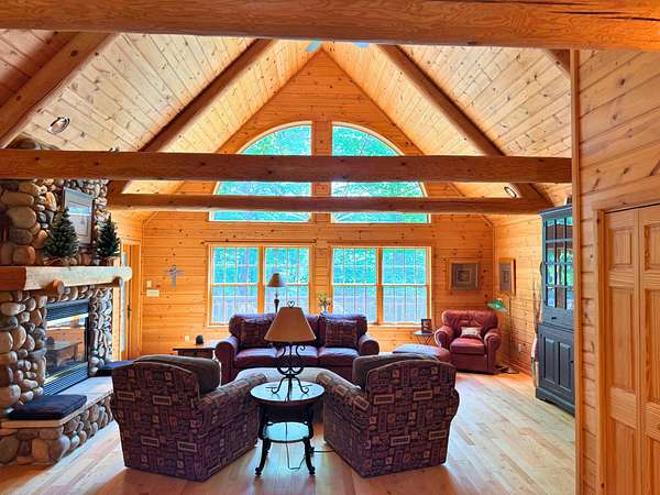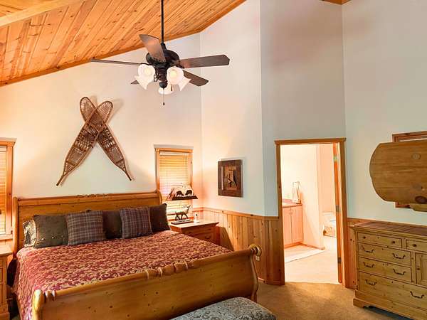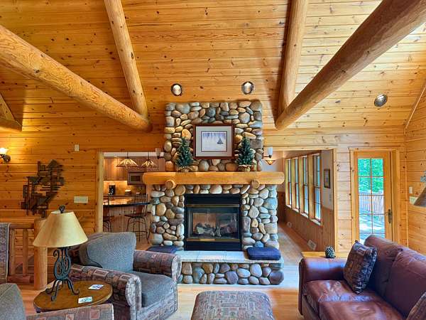 PRIVATE LAKEFRONT RETREAT ON THE SPIRIT. Come and check out this very nicely appointed 5 bedroom 5 bath custom built cedar sided home. With over 4 acres and a double lot with no neighbors in site make this a great Northwoods getaway. The primary suite has a double- sided fireplace to a sitting area as you enter with large bath and walk in closet. Second double-sided fireplace between the dining area and great room and great lake rooms make this such an inviting feel. Hydronic heat in the basement, garage, as well as all bathroom floors and even the large quartz kitchen island. Very nice bar area and rec room in the basement for entertaining or reminiscing about the day. All rooms are very large and comfortable and all of the high end furnishings are included in the sale. Enjoy the screened in porch and large open deck looking over the water and front gable porch make this turn-key property ready for your family to start making their own memories. Call today for a private showing.