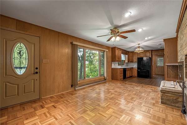 Enjoy peaceful country living on 6+ acres with this well-maintained, move-in-ready home that offers space, comfort, and privacy. Step inside to discover beautiful pecan wood details that bring warmth and character to every room. The vaulted ceilings and large windows in the living and dining rooms create a bright, open feel, while the oak parquet floors and two-way wood-burning fireplace sets the stage for cozy evenings with family and friends. The kitchen features an eat-in area, abundant storage and flows easily into the dining room.The master suite features a large walk-in closet and private half bath. A spacious 3-season porch offers additional living space that can be enjoyed throughout much of the year. Other highlights include a sauna, a workshop, and security system. This home has both a wood burning and gas furnace. Conveniently located near the Red Cedar River, Whitetail Golf Course, and Hoffman Hills State Recreation Area.