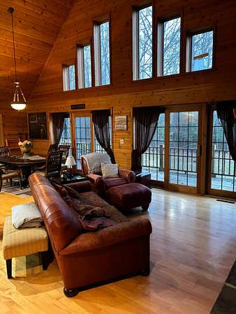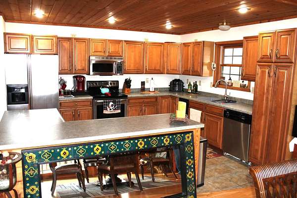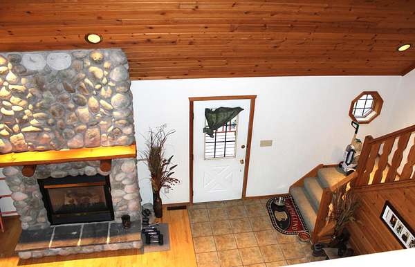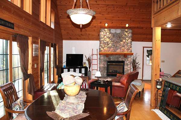 Escape to your own piece of heaven with 19 acres of pristine land and a charming 2-story, 1950 sq. ft. home. This beautifully designed retreat features 2 bedrooms, 2 bathrooms, and a spacious loft overlooking the dining, family areas and sunroom. The open-concept floor plan exudes a cabin feel with a striking cultured stone fireplace and breathtaking knotty pine ceilings with a dramatic 12/12 pitch. The unfinished basement with 9-foot walls is ready for expansion, with roughed-in plumbing for an additional bathroom and extra living space. Outdoor enthusiasts will love the snowmobile and UTV trails right on the property, offering year-round adventure. Perfect for those who seek privacy, nature, and the ultimate escape, this home combines rustic charm with room to grow. Call today to schedule an appointment.