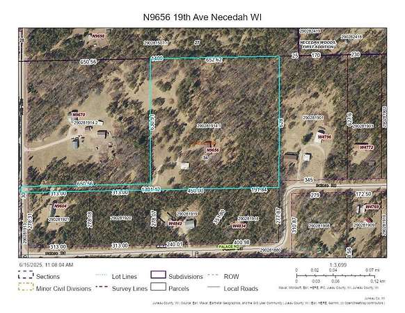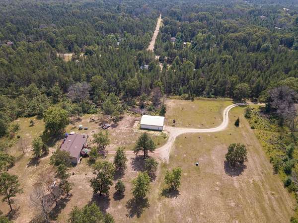 Est $2,208/moTucked away at the end of a long, tree-lined gravel driveway, this 2,000-square-foot home is hidden from the main road, providing seclusion, Country living with modern home comforts. Land is 10.33 ac. a mixture of woods with trails throughout and approximately 2 acres of open land creating privacy while remaining functional for hobbies, livestock, or remote work. The 30 X 40 Pole Building has 200 amp electric, concrete floor, and 8'overhead door. RV Hook up on property has its own holding tank and well. Property is Strategically located between two roads, 19th Ave. a main artery to Castle Rock Lake and Palace Rd., Great for UTV and snowmobile travels.