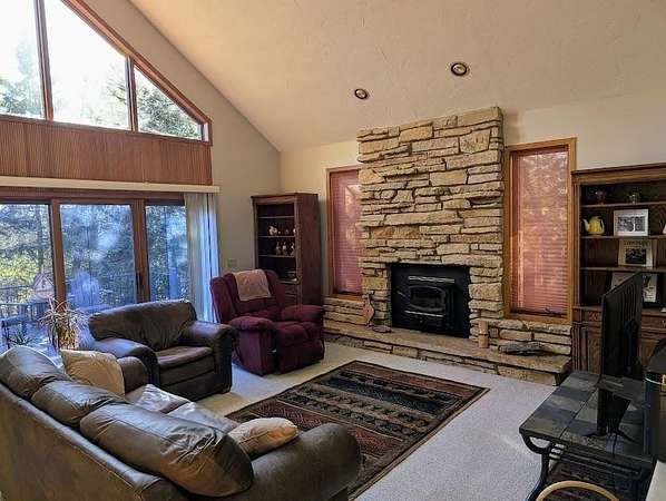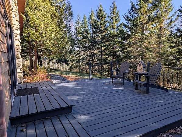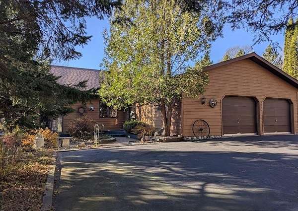 This well-constructed 3 BR 2 BA home offers peace and privacy on 2.8 wooded acres just minutes from downtown Phillips. Enjoy direct ATV and snowmobile trail access, and a convenient location near Bass Lake and other nearby lakes and rivers. Inside, you'll love the cathedral ceiling, floor to ceiling stone fireplace, and large windows that fill the home with natural light. The main floor boasts a spacious Primary Suite with a soaking jet tub and corner shower, and there is a main floor guest bedroom with a private bath. The spacious sunroom has a rustic feel and gorgeous landscape views and opens to a beautiful tiered wraparound deck-perfect for relaxing or entertaining. The home features a rustic feel with a cozy loft bedroom, an attached oversized 2-car garage, and an additional outbuilding for extra storage or hobbies. A perfect Northwoods home or year round retreat with year-round recreation at your doorstep!