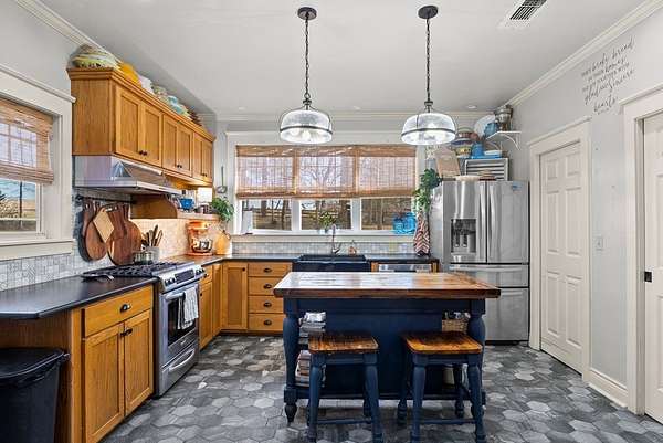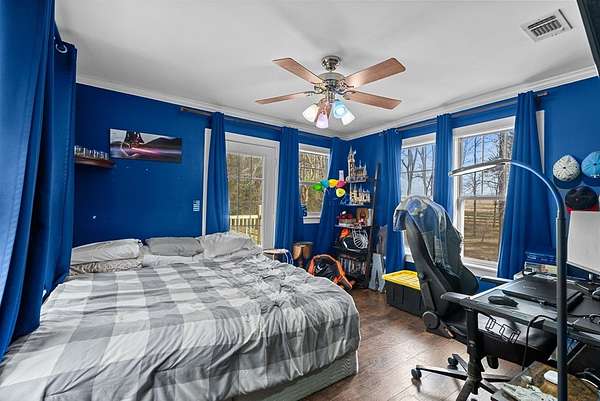 Nestled on 7 serene acres, this stunning 5-bedroom Craftsman-style home offers the perfect blend of comfort, character, and natural beauty. Flooded with abundant natural light, the home features thoughtfully designed living spaces that feel both open and cozy. The main-level master suite provides a private retreat with peaceful views of the surrounding land, while additional bedrooms upstairs offer flexibility for family, guests, or home offices. A charming wood-burning stove anchors the living area, creating a warm, welcoming atmosphere perfect for quiet evenings or gatherings. Step outside to enjoy the picturesque pond, expansive acreage, and endless opportunities for outdoor living, gardening, or simply soaking in the tranquility of country life--without sacrificing craftsmanship or style. This property is a rare find, offering space, privacy, and timeless Craftsman appeal in a truly beautiful setting.