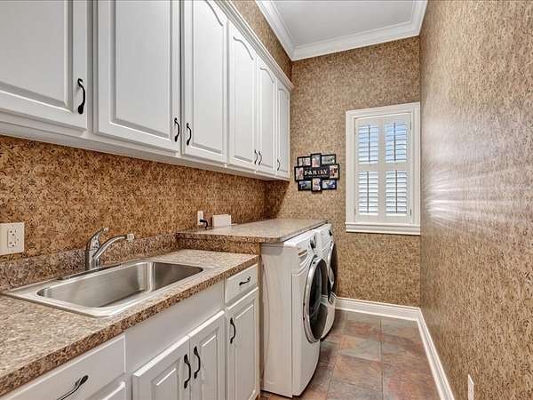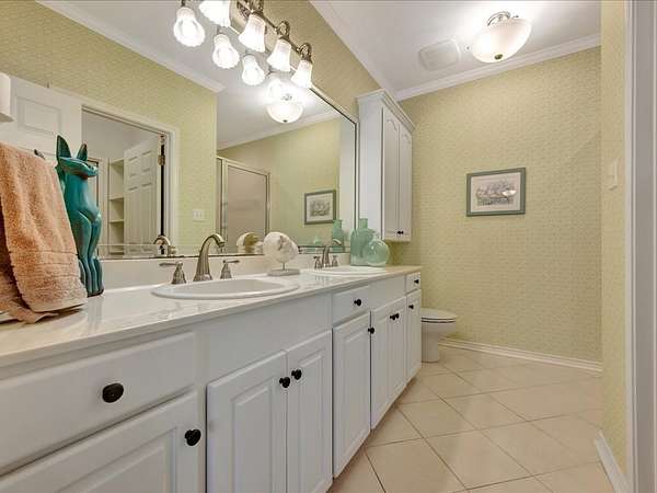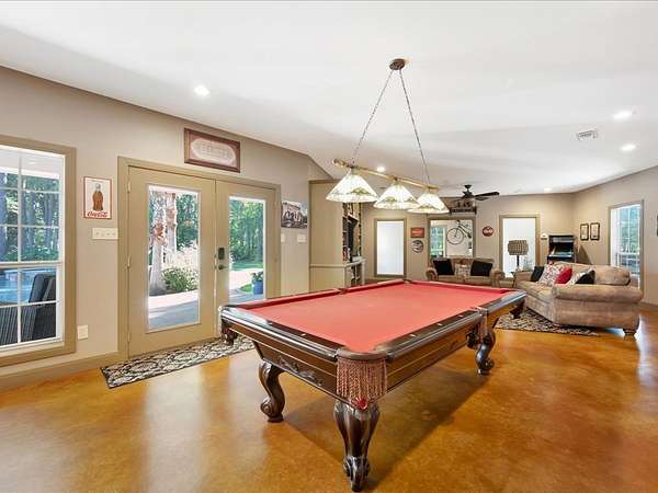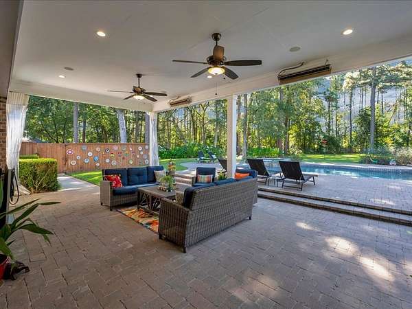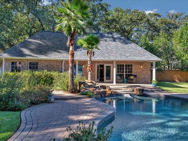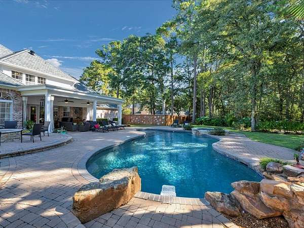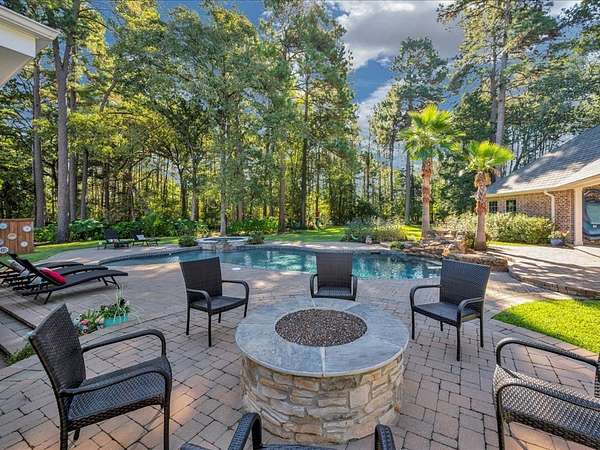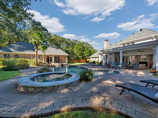Set on a prestigious 1.7-acre parcel in the coveted Waterford Park subdivision, this 1999-built two-story estate exudes timeless elegance and modern refinement. Spanning 4,258 square feet, the home offers 4 bedrooms and 3.5 baths in a sophisticated, thoughtfully designed layout. Elevated ceilings, crown moldings, and a first floor primary suite create a bright, airy atmosphere, while the exterior's gorgeous styling and circular drive convey a sense of arrival worthy of a luxury residence. The backyard is a true entertainer's paradise, seamlessly blending indoor and outdoor living. A deep, covered patio, heated and cooled for year-round use, opens to a Pebble Tec pool with a hot tub and a gas firepit--perfect for alfresco gatherings and quiet evening ambiance. The pool house features a kitchenette, a three-piece bathroom, and a dedicated office, providing versatile space for guests, a home gym, or a private work area. The roof was recently replaced with a 50 year shingle.
