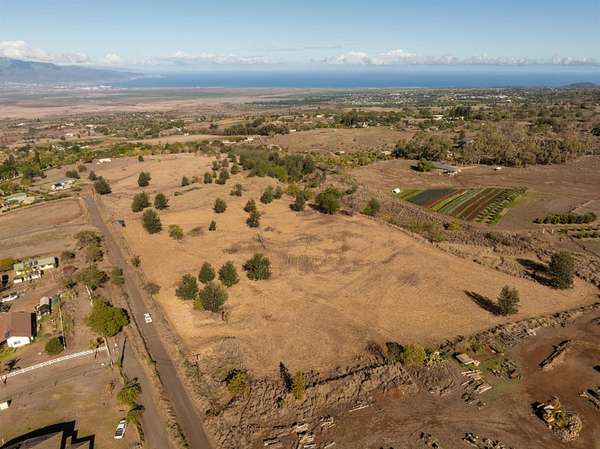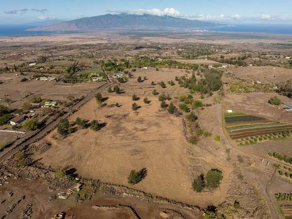 Take a quick drive down a country road in lower Kula, Maui's breadbasket, and you'll find 20 acres of gorgeous, vacant, gently sloping agricultural land. You will be greeted with big ocean views across the North Shore to Molokai, the West Maui Mountains, and Ma'alaea harbor. When you look mauka, you'll see absolutely majestic Haleakala vistas as well. You may come for the views, but you'll stay for the rich soil and the land's diversity. The most difficult decision you will have to make may be where to build, as there are multiple spots with different perspectives. Gentle access to a gulch along the eastern boundary adds privacy and excellent areas to hike. All at a near perfect altitude in Kula, 2,275 feet of elevation. Aspire to Upcountry living, but want to be close to the airport, shopping, and Maui's finest schools? This property has many options and could serve as a boutique agri-tourism business, horse property, family farm, or private estate. A Maui County water meter is installed near the top of the property. This property was previously used as a nursery and pasture. Call your favorite Realtor for a private tour.