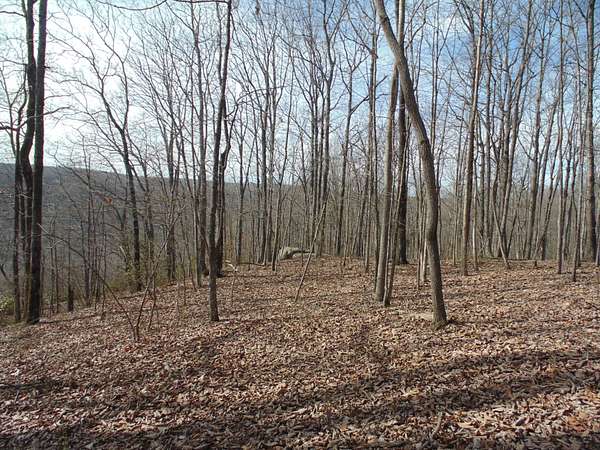 Beautiful wooded bluff lot with great views overlooking Sweeton's Cove. All your utilities are at the road and even have a gig of high speed fiber. Beautiful rock outcroppings along the bluff of the property. Dead end street so there is not a lot of traffic on this road.