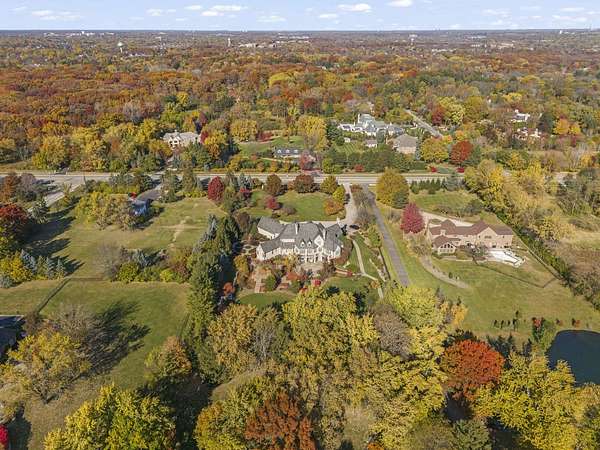Nestled on 3 acres of lush grounds with whimsical gardens, this impeccable estate offers over 12,000 square feet of masterfully crafted living space. A private gated entry welcomes you to a stunning paver brick driveway, leading to a home that took three years for skilled craftsmen and artisans to create. Step through grand cathedral doors into a breathtaking cherry wood foyer, adorned with limestone tile floors. The formal dining room is a masterpiece, featuring a hand-carved plaster ceiling, artisan-crafted leaded windows, and an ambiance of timeless elegance. The library boasts cathedral ceilings, custom lighting, and built-in cabinetry with grand mesh doors, creating a distinguished space for work or leisure. The family room is a showstopper with 20-foot soaring ceilings, 14 expansive windows, antique six-light chandeliers, a majestic cement fireplace, and a dramatic second-story balcony overlook. The gourmet kitchen is a chef's dream, featuring French hand-glazed cabinetry, granite countertops, a Viking four-burner range with grill and griddle, a convection oven, and a warming drawer. Dual Sub-Zero refrigerators are seamlessly integrated behind handcrafted panels. A charming breakfast area with a limestone fireplace adds warmth to the space. A true butler's pantry, complete with an additional Sub-Zero walk-in refrigerator, provides exceptional storage, while a dumbwaiter allows easy access to the lower level. With two expansive first-floor master suites, this home is ideal for multi-generational living, nanny quarters, or luxurious guest accommodations. The walkout lower level is designed for entertainment and relaxation, featuring a home theater, fitness room with sauna, temperature-controlled wine cellar, billiards area, hidden passageways, a full second kitchen, and ample storage. Outside, the enchanting gardens and extensive patios create a storybook setting for relaxation and entertaining. A beautifully crafted exterior storage building, designed to match the home's grand architecture, enhances the estate's elegance. The fully fenced 6-foot wrought iron perimeter ensures total privacy. For modern convenience, the state-of-the-art smart home system offers seamless control over security, lighting, surround sound, and more-all at the touch of a button. This extraordinary estate offers unparalleled craftsmanship, luxury, and privacy-a rare opportunity for those who appreciate timeless elegance and superior quality.