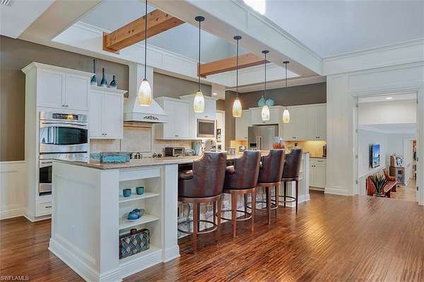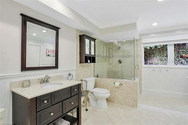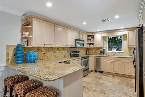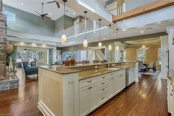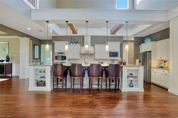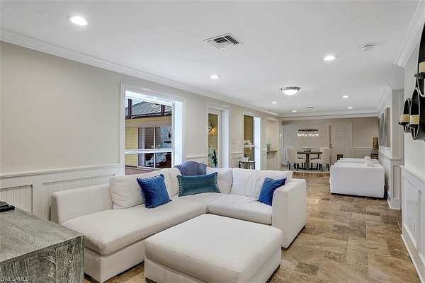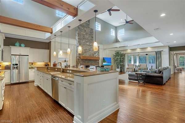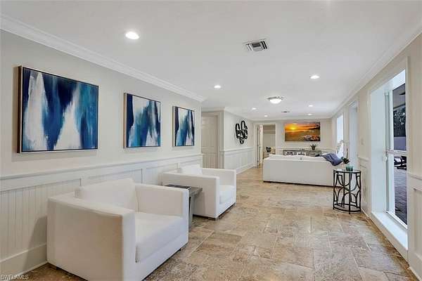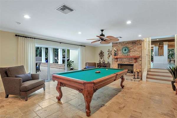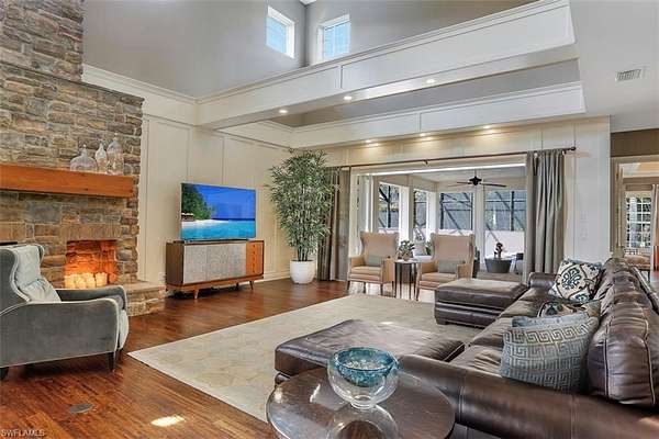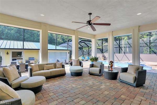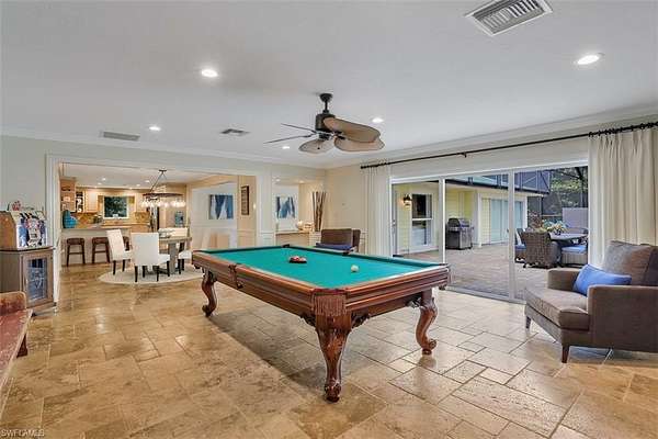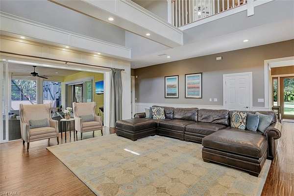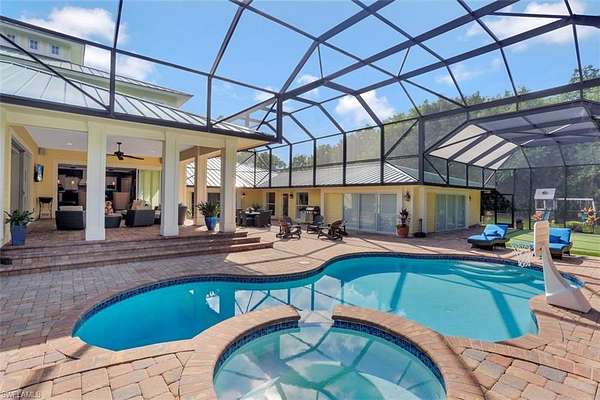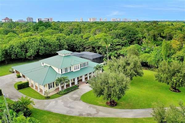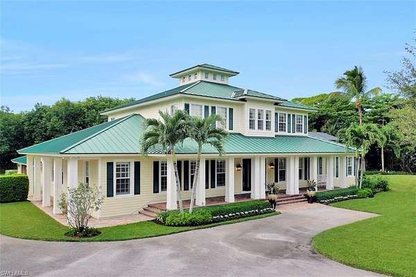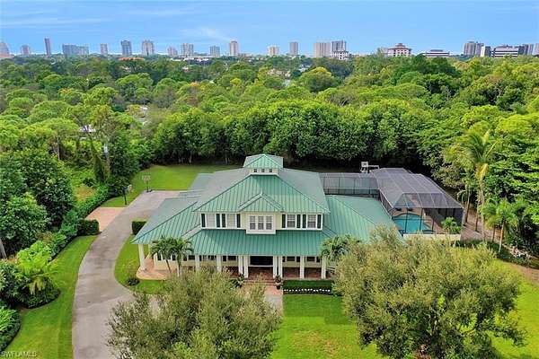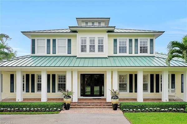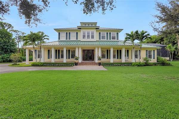 Old Florida Elegance - Nestled on a secluded 1.53-acre tropical estate in the heart of Pine Ridge--voted the Best Neighborhood in the USA--this timeless Old Florida-style residence is a masterful blend of architectural heritage and modern luxury. Framed by a long, winding driveway shaded by majestic oaks and swaying palms, the property exudes a sense of nostalgic charm, comfort, and effortless sophistication. A few noteworthy facts about this home: the Elevation Certificate confirms the lot sits 17 feet above sea level, with main home itself elevated to 20 feet--FEMA Flood Zone AH. Additionally, the home is fully protected with hurricane-impact-resistant windows and doors, providing peace of mind throughout every season. The 5,000 sq ft main residence boasts 5 bedrooms, 3 baths, and an oversized 3-car garage. Designed with an open-concept floor plan, the heart of the home features a stunning center island kitchen, soaring 22-foot ceilings, and an abundance of windows that flood the interior with natural light. Every space is thoughtfully crafted to inspire both grand entertaining and quiet moments of retreat. Step outside to a true Florida oasis--an expansive oversized lanai with a covered terrace, sparkling pool and spa, and even a private putting green and driving range--perfect for enjoying the sunshine lifestyle year-round. The 1,600 sq ft guest house offers 3 bedrooms, 2 baths, and endless possibilities for guests, extended family, or a private office retreat. Located just 1.5 miles from Vanderbilt Beach and moments from the world-class shopping, dining, and cultural experiences of Naples, this estate presents a rare opportunity to own a piece of Florida's timeless elegance in one of the nation's most coveted neighborhoods.