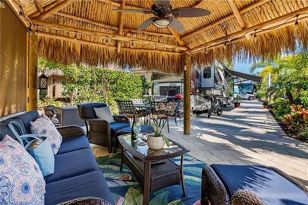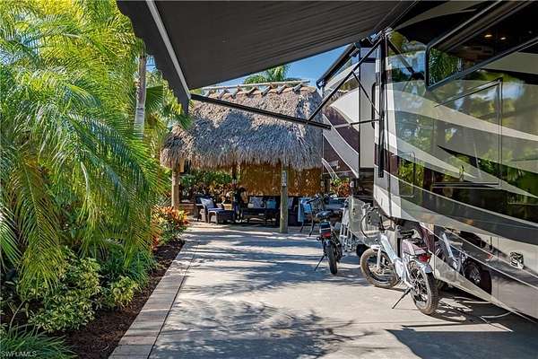 Lot 80 - Welcome to Paradise! You park your coach and the first thing you do is look out your passenger side windows to see all of the beautiful tropical landscaping. You then head out of the coach and walk to your very private tiki all ready for you as the tiki furniture and the tv are included! Your tiki is surrounded by more tropical plants. You sit back and relax enjoying the company of friends or just in silence and listen to the birds. There is also an area for a fire pit, perfect for an evening cocktail. Talk about convenience! You are steps away from one of the satellite pools and spas. There is also a community laundry room right there as well, perfect for those larger items you cannot fit in your coach washer and dryer. Naples Motorcoach Resort is a Class A only resort and boasts a beautiful infinity pool, hot spa, exercise room, men's and ladies saunas as well as a kitchen that owners can use. There are also two satellite pools with a hot spa, their own rest rooms and a laundry room, one of which is right by you!. We can't forget your furry best friend, the resort even has a dog park! Special note to investors, looking for a place to invest or reinvest as a 1031 exchange? Look no further, own this piece of paradise and put it into the management run rental program. The rental program administration advertises, schedules renters, collects payment including applicable taxes/fees and sends you your portion. These deeded lots are mortgage eligible and great for a quick close.