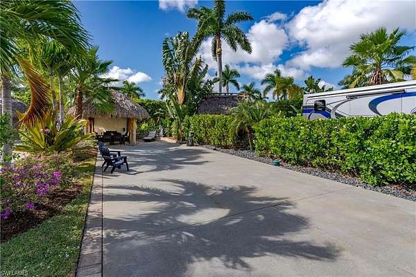 Lot 82 - Tropical Oasis with Oversized Tiki in Naples Motorcoach Resort Welcome to paradise! As you enter Naples Motorcoach Resort, you're immediately entranced by the lush, tropical ambiance that makes this Class A-only community one of Southwest Florida's most sought-after destinations. Continue along the royal-palm-lined streets to Lot 82, your own private retreat surrounded by mature, vibrant landscaping that transports you straight into the tropics from the moment you step off your coach. One of the standout features of this exceptional property is the oversized tiki, offering incredible versatility and endless opportunities for outdoor living. Whether you envision a spacious dining area, multiple conversation spaces, or a combination of both, this tiki provides the perfect setting. Feel the island breezes, entertain friends in style, and enjoy every moment of resort living. Location perfection: Lot 82 is just steps from one of the community's satellite pools and spas, offering the ultimate of relaxation whenever you desire. A conveniently located community laundry facility is also nearby-ideal for handling linens or larger items that don't fit in your coach's washer and dryer. Naples Motorcoach Resort offers premium amenities, including a stunning infinity-edge pool, hot spa, well-equipped fitness center, men's and women's saunas, and a beautiful community kitchen for owner use. Two additional satellite pools, each with their own spa, restrooms, and laundry facilities, provide convenience throughout the resort. And for your furry family member, there's even a dedicated dog park! Have a boat? Enjoy the convenience of launching directly from the private, within-the-gates community boat ramp, then set out for a breathtaking sunrise or sunset cruise to Marco Island or Naples-perfect for a scenic lunch on the water. No boat? No problem. Simply sign out one of the community kayaks and float peacefully toward the 10,000 Islands, where you can immerse yourself in untouched nature, observe native birds and fish, and keep an eye out for gentle manatees and the dolphins that frequently glide alongside your journey. This is true Southwest Florida living at its finest. Investors take note: This property qualifies for the resort's management-run rental program, making it an excellent option for a 1031 exchange or income-producing investment. The program handles advertising, scheduling, payment processing (including taxes/fees), and disbursement-providing effortless passive income. These deeded lots are mortgage eligible and allow for quick closings. Lot 82 offers tropical beauty, convenience, and exceptional value-your slice of paradise awaits.