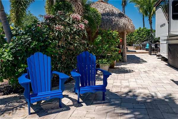 Lot 25 - Tropical Waterfront Paradise with Private Dock & Casita An Incredible Value in Naples Motorcoach Resort Welcome to Lot 25, a truly captivating waterfront retreat where luxury, tropical beauty, and everyday convenience come together in one extraordinary package. From the moment you drive your Class A Motorcoach through the gates of Naples Motorcoach Resort and down the royal-palm-lined boulevard, you'll know you've arrived somewhere special. As you pull into Lot 25-your own private oasis-you're surrounded by lush, meticulously designed landscaping that sets the tone for relaxation. Your first stop: a charming tiki hut, the perfect spot to savor your morning coffee, unwind with friends, or simply enjoy the warm Florida breezes. Nearby, an additional outdoor dining area awaits. Continue exploring and you'll discover the crown jewel of this property: a beautifully appointed casita, offering exceptional comfort and versatility. Featuring a living room with a space-saving murphy bed, a well-equipped kitchen, an elegant bathroom, soaring ceilings, abundant storage, and bright windows adorned with crisp plantation shutters, this casita provides effortless indoor-outdoor living. Oversized glass doors invite natural light and tropical views into every corner. And then-just when you think it can't possibly get better-you step outside and follow the paver pathway to your private, oversized dock on a canal with indirect Gulf access. Complete with outdoor furniture, fire table, and oversized umbrella, this waterfront haven is where memories are made. Watch for manatee, snook, and the occasional curious shark as you relax with a beverage. Your boat, easily launched from the community boat ramp, waits right at your dock for sunset cruises through peaceful mangrove-lined waterways leading to the Gulf. Picture this: wine, close friends, and a glowing sky as the sun sets over the water-an experience you can enjoy again and again from your own residential paradise. Naples Motorcoach Resort is a Class-A-only, luxury resort featuring: - A stunning infinity pool overlooking the lake and fountain - Hot spa, fitness center, and men's & ladies' saunas - Community kitchen and elegant clubhouse for private or resort events - Two satellite pools, each with their own hot spa, restrooms, and laundry - A dedicated dog park for your furry travel companions Lot 25 is more than a property-it's a lifestyle. A tropical waterfront haven with a rare casita, private dock, and exceptional value in one of the area's most desirable resorts. Come experience paradise. Come home to Lot 25.