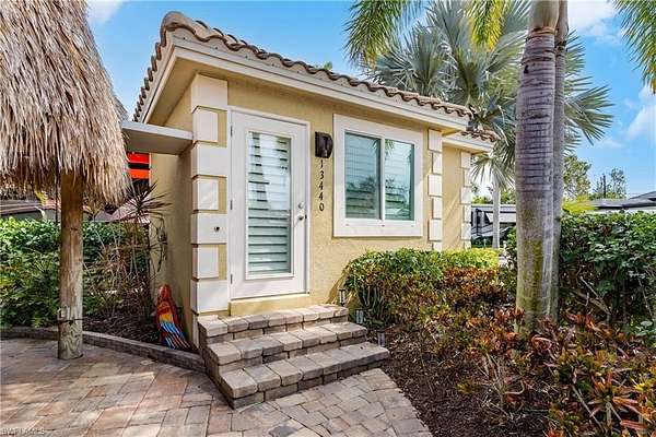 Lot 173 - You pull into the richly landscaped gated Class A Motorcoach Resort, you marvel at the entrance fountains as you pull up to the gates. You are now facing a larger fountain that fronts the beautiful club house, also richly landscaped. You make the turn and go around the lake till you get to your new home away from home. You make the right into your fully paved circular drive site, again richly landscaped. To your right you see your fully air conditioned casita with huge living space and a large bathroom. Next to your amazing casita is a huge tiki with plenty of seating for friends and family. But wait.... there's more! As you move towards the coach wait.... two more seating areas, and one of them is in a fully enclosed with gate seating area with front row seats to the lake and fountain! Perfect area to keep your pet with you while you sit and enjoy the fountain. This location on the lake give you a direct lake view which on the far end of you lake you see the man made beach that backs up to the infinity pool and clubhouse. Truly one of the best views! This oversized lot accommodates all of this plus a 45 foot coach, a vehicle and a golf cart with entertaining room galore. This property is an absolute must see... Naples Motorcoach Resort is a Class A only resort and boasts a beautiful infinity pool, hot spa, exercise room, men and ladies' saunas and a kitchen that owners can use. A clubhouse for events whether sponsored by the resort or you can reserve for your own gathering. Two satellite pools each with a hot spa their own rest rooms and a laundry room. We can't forget your furry best friend; the resort also has a dog park!