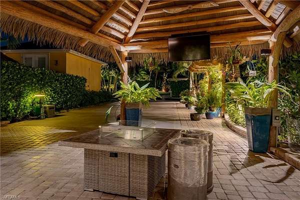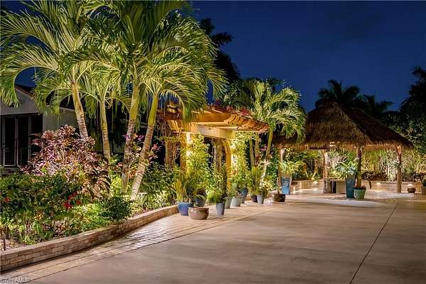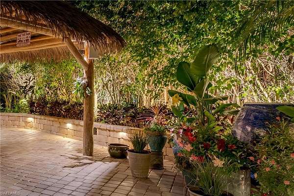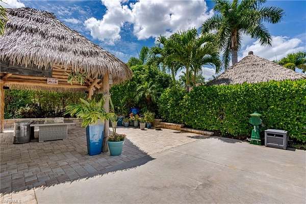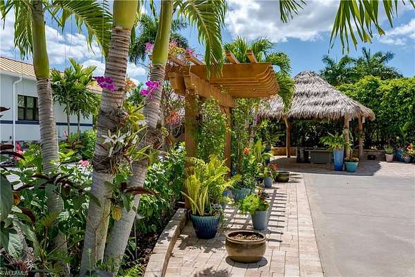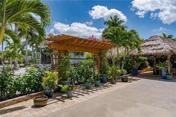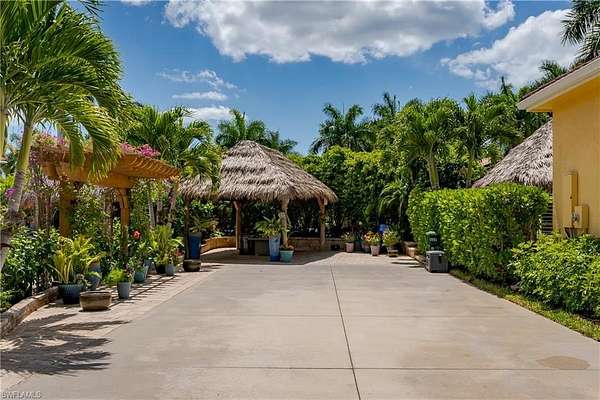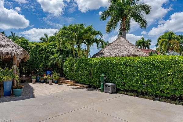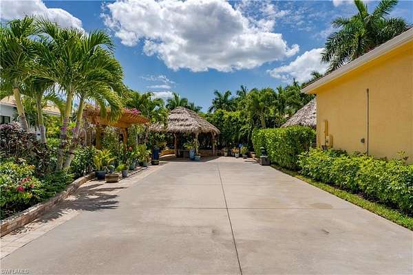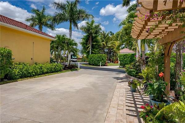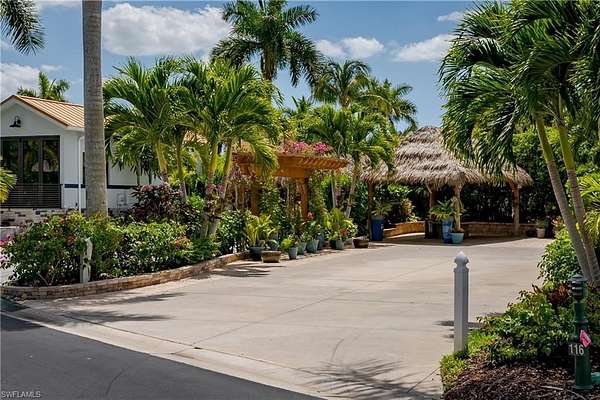 Lot 117 - You drive through the gated entrance marveling at the lush landscaping and fountains, you make a left and marvel at the royal palms and you now make a right onto your street, a short drive and on your right you back into your paradise home. As you settle in and look out the front of your motorcoach you see beautiful landscaping, as you exit your coach you see even more beautiful landscaping. As you walk to the rear of the property you pass your first area of bliss, where you drink your morning coffee or tea under your pergola. You marvel at the bougainvillea that is climbing up and across the pergola with its beautiful flowers. You now walk further back and see your large tiki. You can entertain, read a book or just relax listening to the breezes through the leaves of your beautiful plants. Now what can make this even better?? Your tiki has a new synthetic roof.... it looks so natural and so beautiful, but wait no mess to ever have to blow off your patio from the roof, it lasts years longer than a natural and is maintenance free, no need to spray for bugs! But wait there is another area off to the side, what will you put there? A couple more chairs? A water feature? Perhaps nothing, just keep it as open space. This property offers mature and colorful landscaping and abundant privacy. See this property via a virtual tour or in person today. Naples Motorcoach Resort is a Class A only, gated resort and boasts a beautiful infinity pool, hot spa, exercise room, men and ladies' saunas and a kitchen that owners can use. A clubhouse for events whether sponsored by the resort or you can reserve for your own gathering. Two satellite pools each with a hot spa their own rest rooms and a laundry room. We can't forget your furry best friend; the resort also has a dog park!