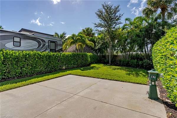 Lot 47 - You drive through the gates after admiring the beautiful flower and tree lined entry and two fountains; you are now facing an even more magnificent fountain in front of the clubhouse. As you turn and head to your slice of paradise, once again you cannot believe how beautiful this road is lined with Royal Palms... You continue to your piece of paradise, you have decided to leave the property in its current undeveloped state for this first stay of yours. You want to look at everything others have done, and come up with your own design that works for you. Do you want a casita? A tiki? both? You are living in the space designing your version of paradise.... A little water feature... lush tropical landscaping, pavers.... your canvas awaits for your creation. This property is a prime location, only a short walk to one the satellite pools and spas and bath house, a little bit further and you are at the dog park! Naples Motorcoach Resort is a Class A only resort and boasts a beautiful infinity pool, hot spa, exercise room, men's and ladies saunas as well as a kitchen that owners can use. There are also two satellite pools with a hot spa, their own rest rooms and a laundry room. We can't forget your furry best friend, the resort even has a dog park! Special note to investors, looking for a place to invest or reinvest as a 1031 exchange? Look no further, own this piece of paradise and put it into the management run rental program. The rental program administration advertises, schedules renters, collects payment including applicable taxes/fees and sends you your portion. These deeded lots are mortgage eligible and great for a quick close.