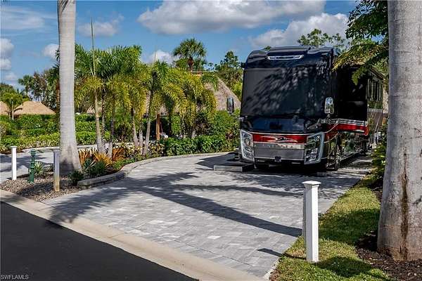 Lot 54 - A Private Tropical Retreat in Naples Motorcoach Resort Welcome to Lot 54, where every arrival feels like a vacation. As you enter the gates of Naples Motorcoach Resort, you're greeted by lush, flower- and tree-lined streets and sparkling fountains that set the tone for the luxury that awaits. Passing the grand clubhouse fountain, you turn onto a Royal Palm-lined road and head toward your very own slice of paradise. Backing into this beautifully fully paved lot, you'll immediately appreciate the rare bonus of two privacy walls, creating an intimate and serene setting. Mature, lush landscaping surrounds the property, offering both beauty and seclusion. Once settled in, it's time to unwind under your oversized tiki, beverage in hand, imagining the possibilities-while enjoying the peaceful tropical ambiance. Feeling refreshed? You're just a short, scenic walk from one of the resort's two satellite pools, complete with a spa and country club styled bathhouse.. A quick dip, a relaxing soak, and you're fully immersed in the Naples lifestyle. And tomorrow? The options are endless. Launch a community kayak from the on-site boat ramp and explore the pristine waters of Rookery Bay. Dreaming bigger? Boat ownership is easy here-launch from within the resort and cruise to the beach or dock at a waterfront restaurant for lunch or dinner. Try your hand at pickleball on one of three courts, work out in the fitness center, relax in the sauna, or simply lounge poolside and soak up the Florida sunshine. Naples Motorcoach Resort is a Class A-only luxury resort, featuring a stunning infinity pool, hot spa, fitness center, men's and women's saunas, and a clubhouse with a catering kitchen available for owners' use. Two satellite pool complexes enhance convenience, and even your furry companion is covered with a dedicated dog park. Investor-friendly opportunity: This deeded, mortgage-eligible lot is ideal for personal enjoyment or as part of the resort's professionally managed rental program-perfect for investors or a 1031 exchange. The program handles advertising, bookings, payments, and taxes, making ownership truly turnkey. Welcome to the magic of Naples Motorcoach Resort-where tropical beauty, luxury amenities, and effortless living come together at Lot 54.