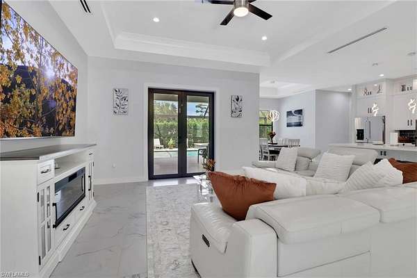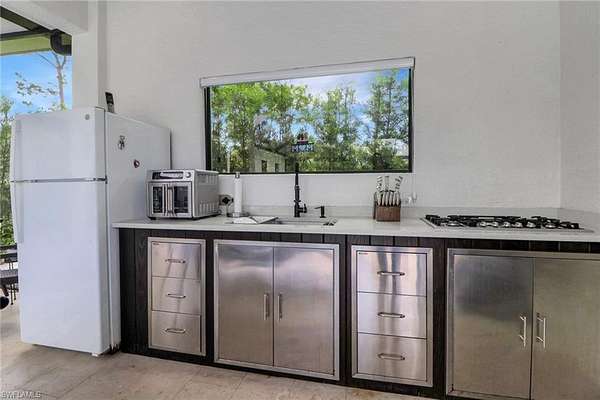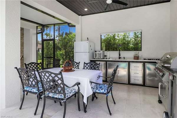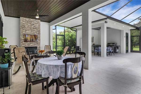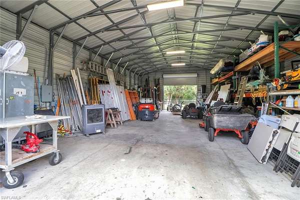 Welcome to your private paradise! This stunning estate on 2.27 fenced acres features a sleek metal roof, impact windows and doors, full foam insulation (including garage and lanai), and a long paved driveway. Inside, you'll find 3 bedrooms plus a den, 4 full bathrooms, a gourmet KitchenAid kitchen with walk-in pantry, and sound-insulated interior walls for comfort and privacy. 2 Car Garage. Reverse osmosis water system, and 5,120 total square feet of luxury. The outdoor oasis offers a heated saltwater pool and jacuzzi with travertine deck, outdoor kitchen, fireplace, and gazebo with bathroom and shower-all surrounded by lush Plum Pine Podocarpus landscaping for poolside privacy. Additional highlights include a 30x50 Warehouse a home that truly feels like paradise from the moment you arrive.