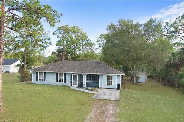 Rare opportunity in the heart of Golden Gate Estates where space meets value on this expansive 1.59 acre property featuring a 3 bedroom 2 bathroom home with 1,348 square feet of comfortable living space at an exceptional price point that stands alone as the most affordable single family residence in the entire Estates community. This eastern Naples location provides the perfect balance between peaceful acreage living and convenient access to everything Southwest Florida offers, positioned just minutes from I-75 for effortless regional travel while Golden Gate Boulevard and surrounding corridors connect you directly to Naples beaches in approximately 25 to 30 minutes and downtown Naples in roughly 20 to 25 minutes. Shopping and dining convenience sits just three streets north at the commercial intersection where everyday essentials and services are within easy reach of your front door, and the 7 Mart location provides quick access to groceries and necessities without venturing far from home. The southern exposure bathes the property in natural light throughout the day while the fenced backyard offers secure outdoor space for pets, children, or gardening pursuits across your private acreage. The property delivers true freedom with no HOA fees or restrictions, giving you complete flexibility to customize your homesite, store recreational vehicles and boats, pursue equestrian activities with room for horses, or simply enjoy the privacy that comes with nearly an acre and a half of land between you and your neighbors. Golden Gate Estates residents enjoy remarkable access to outdoor recreation including the nearby Golden Gate Community Park with its aquatic complex, fitness center, tennis and basketball courts, dog park, and boat ramp, while nature enthusiasts appreciate proximity to Big Corkscrew Island Regional Park, Picayune Strand State Forest, and CREW trails offering hiking, biking, and wildlife viewing throughout the year. The location keeps you connected to growing commercial development along Immokalee Road and Collier Boulevard where new shopping plazas, restaurants, medical facilities, and services continue expanding to serve the community, and families benefit from access to quality Collier County schools including Big Cypress Elementary, Sabal Palm Elementary, Cypress Palm Middle, and Golden Gate High. This property represents an extraordinary entry point into one of Naples most sought after acreage communities where you can build equity while enjoying the rural lifestyle that makes Golden Gate Estates unique, all without sacrificing the convenience of being within easy reach of Gulf Coast beaches, world class golf courses, and the cultural amenities that define Naples as one of Florida's premier destinations.