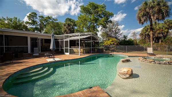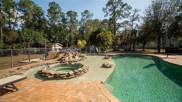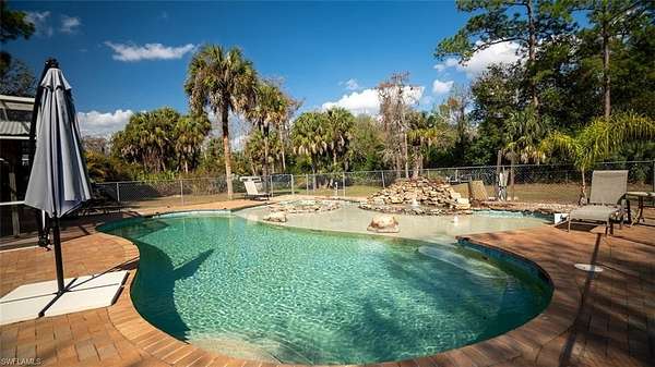Est $4,499/moOwning LAND in Naples, Florida is "gold" but finding it in a location that features the best of both worlds at the lowest price in this desirable area, is an opportunity for the ones that are looking for life style and investment. * Proximity to the city (2 miles to 951 collier Blvd) and 20 minutes away from the beaches and old Naples. Plenty of land (2.73 acres) for privacy and potential expansion is an opportunity that you should not miss. * Huge enclosed lanai with a tiki-bar and resort style pool. ** Remodeled with an open kitchen, plenty of cabinets for storage, tile floors. * Fenced.