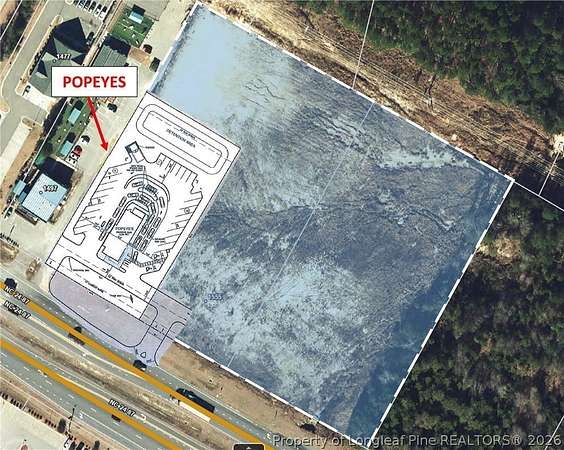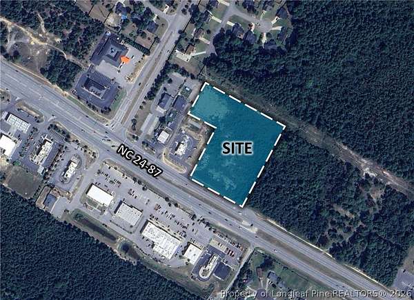 Est $10,892/moPrime +/- 4.88 acres of commercial land available for sale on the busy, fast growing corridor of NC Highway 24-87 in Spout Springs. Excellent visibility with approximately +/- 440 feet of road frontage. Located across from The Oaks of Northgate shopping mall, this property is a great opportunity for retail, restaurant, grocery, medical, etc. Popeye's was just built at the corner. Property has water and sewer. Traffic Count is 35,000 AADT. Please contact Malinda Craven for further information.