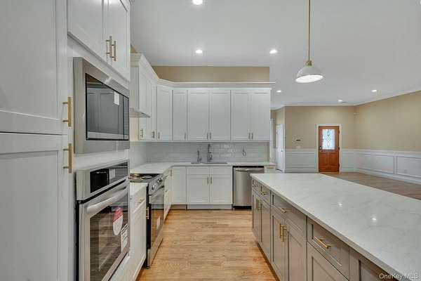 Premier new construction opportunity in Port Jefferson Station featuring the Hampton Ranch model by Terra Construction Group. This thoughtfully designed single-level home offers approximately 2,150 sq ft of living space with 3 bedrooms and 2 bathrooms, set on an oversized lot of approximately 2.50 acres within a premier new construction development. The open floor plan features 9-foot ceilings, hardwood flooring in the main living areas, recessed lighting, and a spacious living and dining layout ideal for everyday living and entertaining. The gourmet kitchen includes custom shaker-style cabinetry, quartz countertops, stainless steel appliances, and quality finishes throughout. The primary suite offers a private retreat with en-suite bath, while additional bedrooms provide flexibility for guests or home office use. Additional highlights include a full unfinished basement, attached two-car garage, fireplace in the main living area, energy-efficient windows, two-zone heating and central air, and a private on-site I/A OWTS sanitary system. Model pricing, specifications, square footage, and finishes are subject to change.